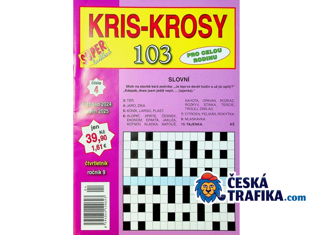 Užijte si zábavu a procvičte si svůj postřeh s časopisem 103 Kris-Krosy - edice Superluštění. Na 32 stranách na vás čeká 103 různých Kris-Krosů, které vás zaručeně zabaví na dlouhé hodiny.