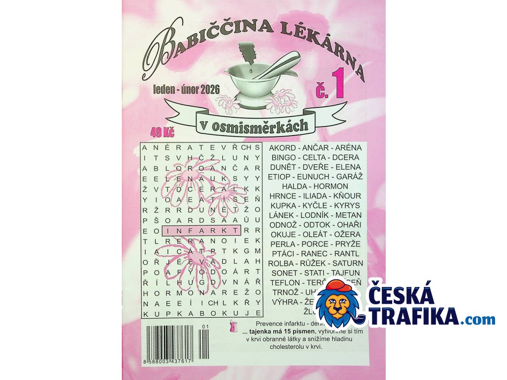 Časopis Babiččina lékárna v osmisměrkách je ideální pro chvíle odpočinku doma, na cestách nebo kdekoliv, kde potřebujete trochu relaxace a zábavy. S jeho pomocí zapomenete na stres a zároveň si procvičíte logické myšlení a postřeh.