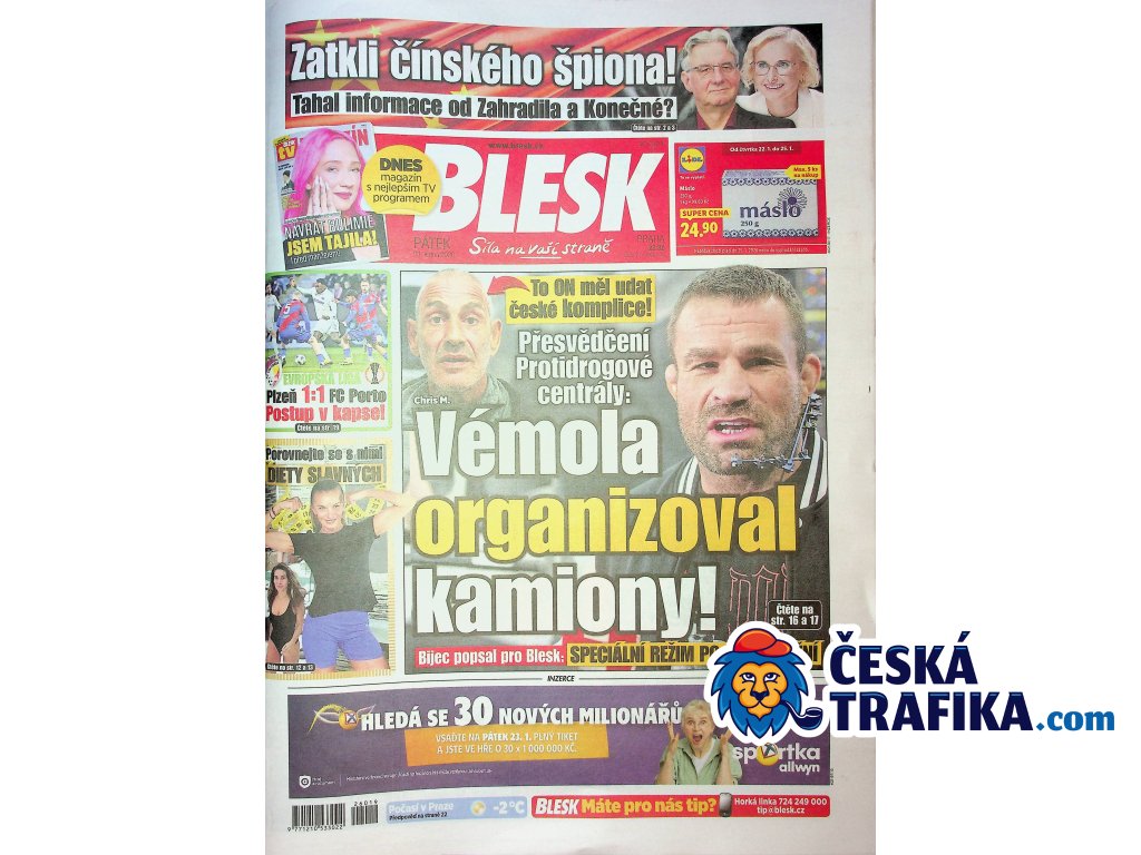 Deník Blesk je nejprodávanější a nejčtenější celostátní noviny v České republice. Každý den vám přináší aktuální zpravodajství, které potřebujete znát – přehledně, srozumitelně a v plném barevném provedení.
