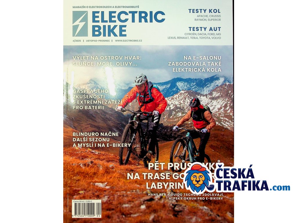 Časopis Electric Bike je určen všem nadšencům moderní cyklistiky a elektrických kol. Najdete v něm podrobné testy nejnovějších modelů elektrokol, srovnávací recenze, rady pro výběr správného kola i příslušenství, tipy na servis a údržbu, technologické novinky a trendy ze světa e-mobility. Nechybí ani inspirace na cyklovýlety, rozhovory s experty a zkušenosti uživatelů.