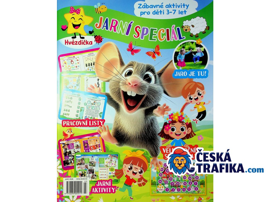 Hvězdička speciál je veselý a barevný časopis určený dětem ve věku od 3 do 7 let. Přináší zábavné aktivity, hry, pracovní listy a nápady na tvoření, které pomáhají malým čtenářům objevovat svět kolem sebe. Každé vydání je zaměřeno na nové téma a nabízí hravý způsob učení i rozvoj dětské fantazie.