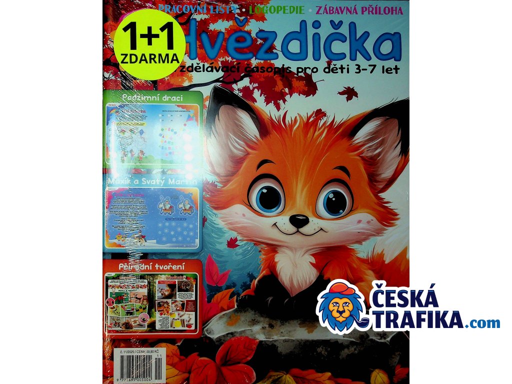 Hvězdička je vzdělávací časopis plný zábavy a aktivit, které podporují rozvoj dětí. Obsahuje pracovní listy, hravou angličtinu, a vždy přináší i zábavnou přílohu, která děti nadchne! Ideální pro malé objevitele, kteří se chtějí učit a bavit zároveň. ✏️📚