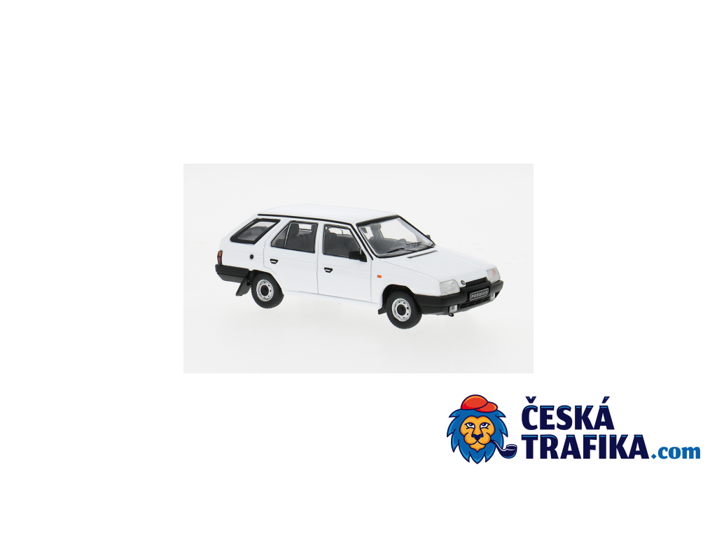 Vůz v klasickém sběratelském měřítku 1:43 přichází v naprosto autentickém provedení. Typický bílý lak ostře kontrastuje s dobovými černými nárazníky a černým lemováním, přesně tak, jak si tento praktický kombík všichni pamatujeme. Model kombinuje poctivou kovovou karoserii s precizně zpracovanými plastovými detaily, včetně typických plechových disků kol.