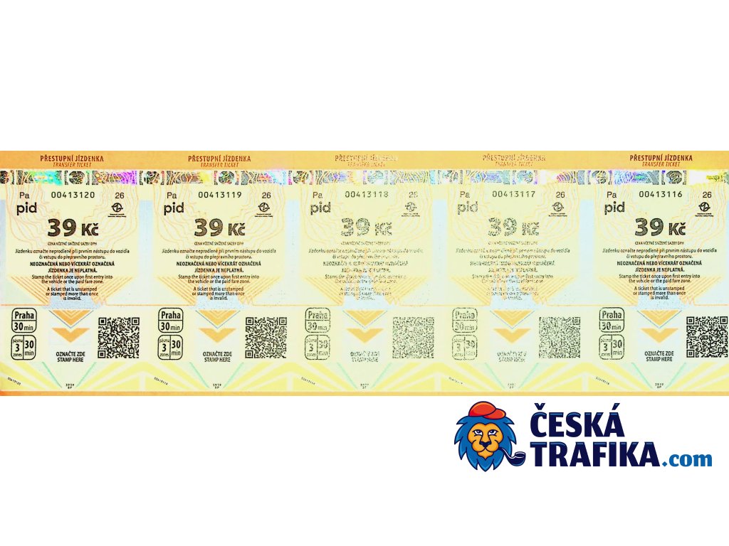 Jízdenka Praha – 39 Kč - 5 ks 🚋🚌🚇
