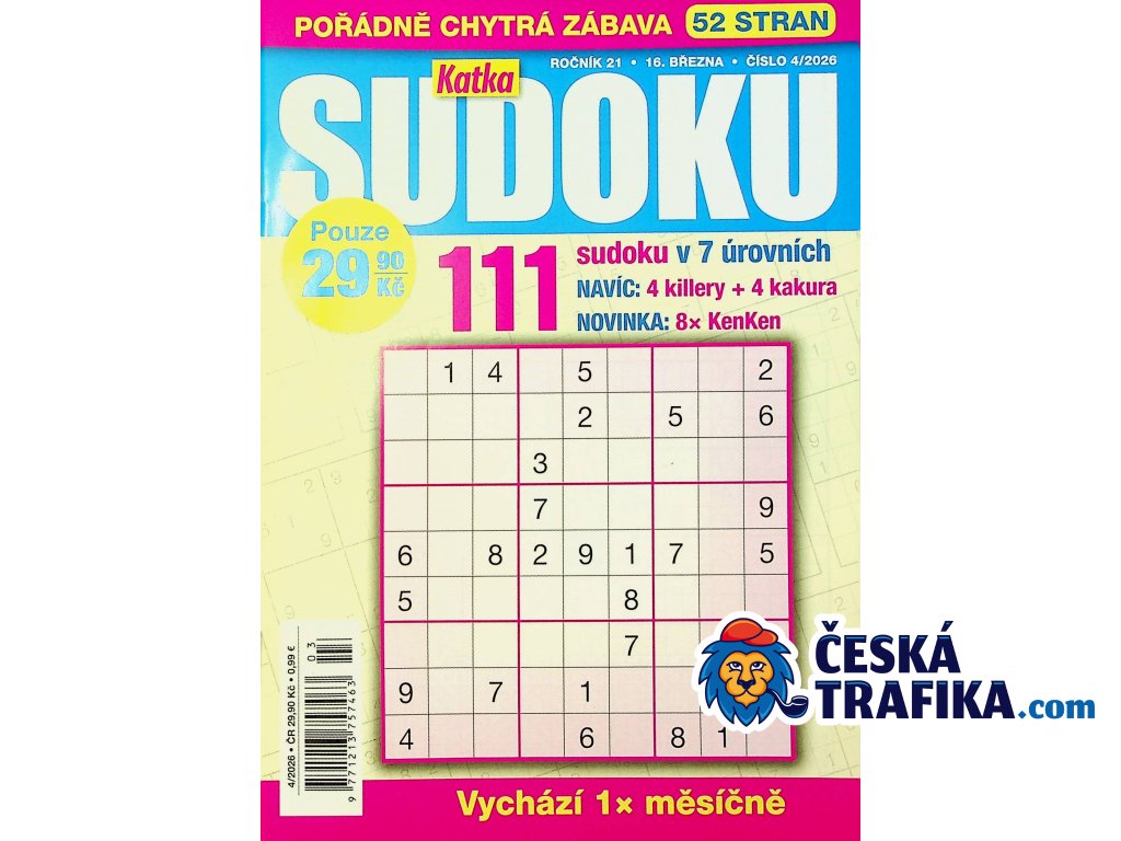 Katka Sudoku vychází každý měsíc (čtvrtek), takže si můžete pravidelně užívat novou dávku zábavy. Pořiďte si svůj výtisk a ponořte se do světa logiky a chytré zábavy! 🧩✨