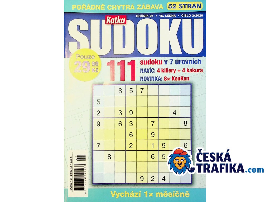 Katka Sudoku vychází každý měsíc (čtvrtek), takže si můžete pravidelně užívat novou dávku zábavy. Pořiďte si svůj výtisk a ponořte se do světa logiky a chytré zábavy! 🧩✨