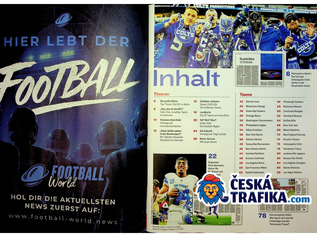 Kicker Sonderheft „Who is Who der NFL" je speciální vydání prestižního německého sportovního magazínu Kicker ve spolupráci s Football World. Přináší kompletní průvodce sezónou NFL 2025/2026 – ideální příručka pro všechny fanoušky amerického fotbalu v německy mluvících zemích.