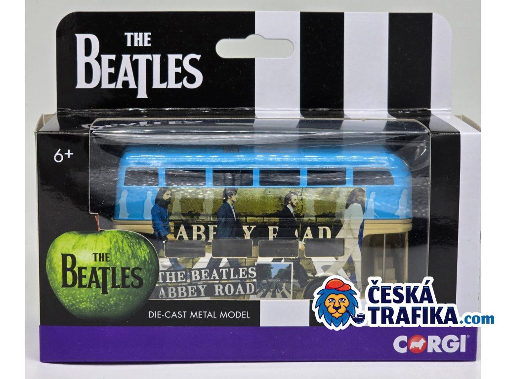 Karoserii autobusu zdobí unikátní potisk s motivem jejich jedenáctého studiového alba Abbey Road, včetně legendární siluety Johna, Paula, George a Ringa přecházejících přes slavný přechod pro chodce. Model je dodáván v tematické krabičce s typickými černobílými pruhy a ikonickým zeleným jablkem hudebního vydavatelství Apple Corps. Jde o perfektní dárek pro každého fanouška „Brouků“, milovníka hudební historie nebo sběratele originálních modelů. 🇬🇧🍏🎸