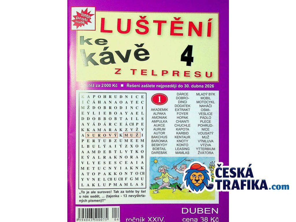 Objevte zábavu a relaxaci s měsíčníkem Luštění ke kávě! Tento oblíbený časopis je plný zajímavých a vtipných tajenek, které vám zpříjemní chvíle u šálku kávy nebo kdykoliv během dne. Za neuvěřitelně nízkou cenu získáte pořádnou dávku zábavy a zároveň možnost procvičit svůj postřeh a logické myšlení. Vydává společnost Telpres