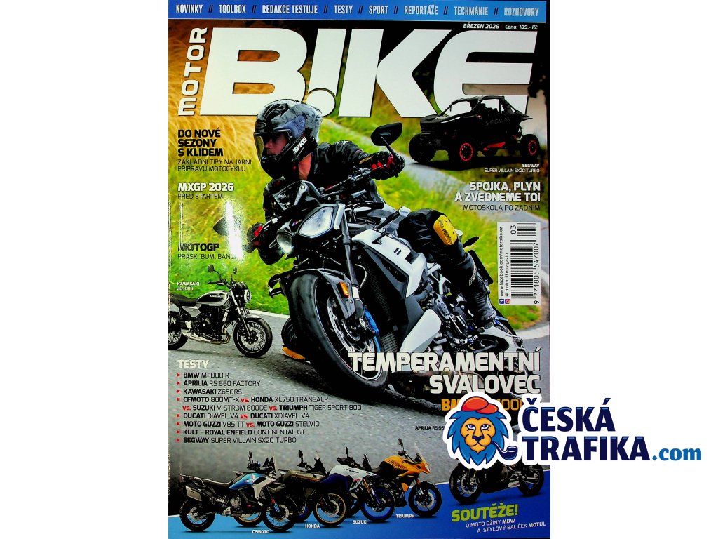 Motorbike není jen časopis, je to povinná výbava každého, kdo propadl kouzlu jedné stopy. Tento tradiční měsíčník vás provede světem motocyklů od A do Z, ať už jste vyznavačem pohodových chopperů, rychlých supersportů, nebo bahnitých enduro tratí.