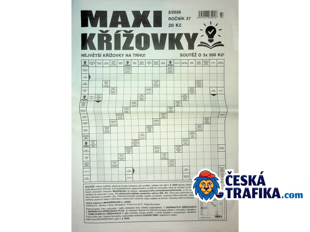 MAXI křížovky jsou oblíbeným měsíčníkem pro všechny milovníky luštění! Tento časopis vydavatelství Mafra nabízí velkoformátové švédské křížovky, které vás nejen zabaví, ale také potěší svou jedinečnou tajenkou. Tajenky obsahují zajímavé citáty a vtipné aforismy, které vykouzlí úsměv na tváři. Navíc máte možnost soutěžit o atraktivní peněžní ceny! Ideální pro chvíle relaxace a zábavy. Přidejte se k tisícům čtenářů, kteří si užívají tento luštitelský skvost každý měsíc!