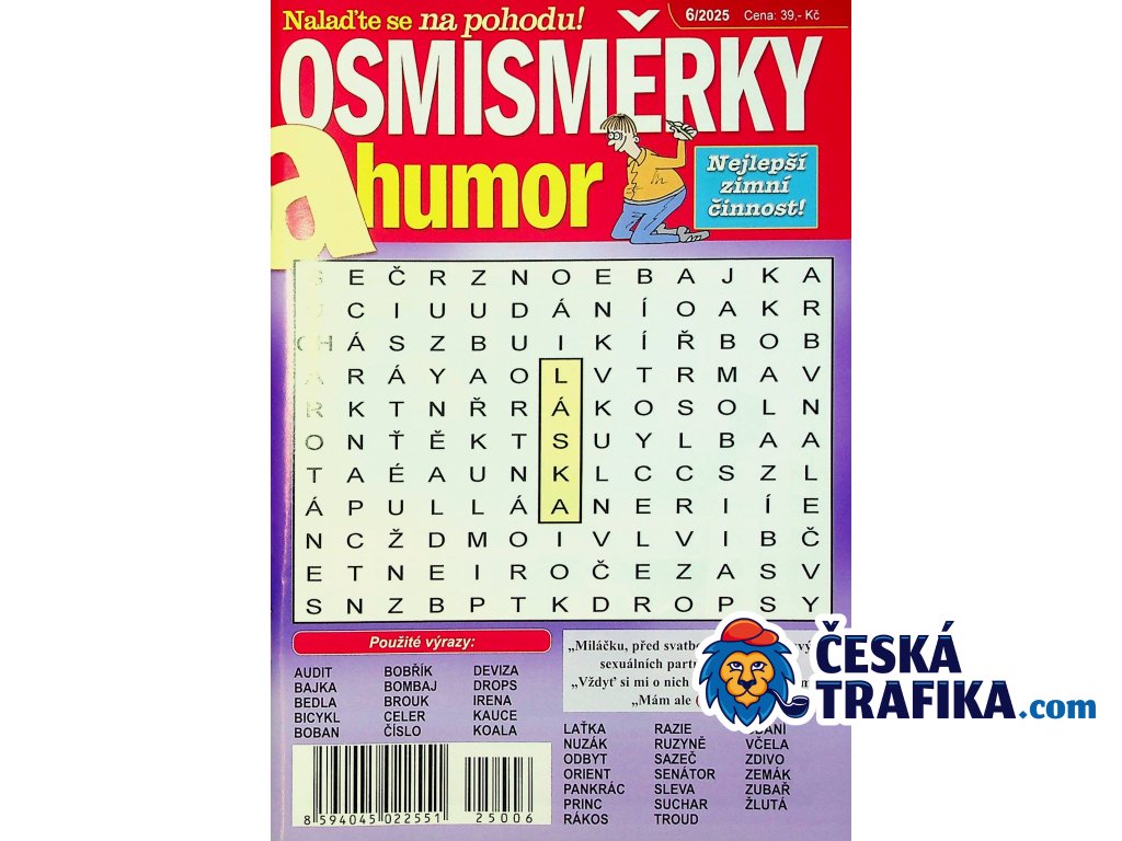 Odpočiňte si u oblíbených osmisměrek a pobavte se vtipným obsahem. Časopis Osmisměrky a humor kombinuje velký výběr klasických osmisměrek s odlehčeným čtením pro dobrou náladu.