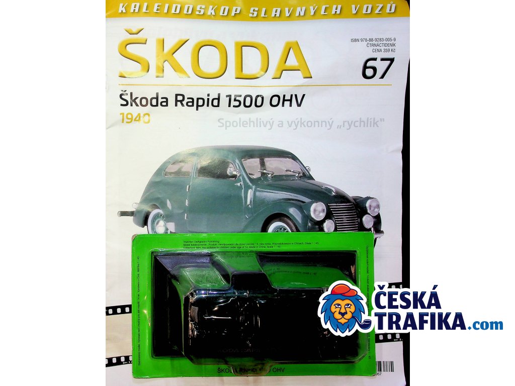 Sběratelský model elegantní Škody Rapid 1500 OHV z roku 1940 – vozu, který si díky své spolehlivosti a výkonu vysloužil přezdívku „rychlík". Součást oblíbené edice Kaleidoskop slavných vozů Škoda, číslo vydání 67.