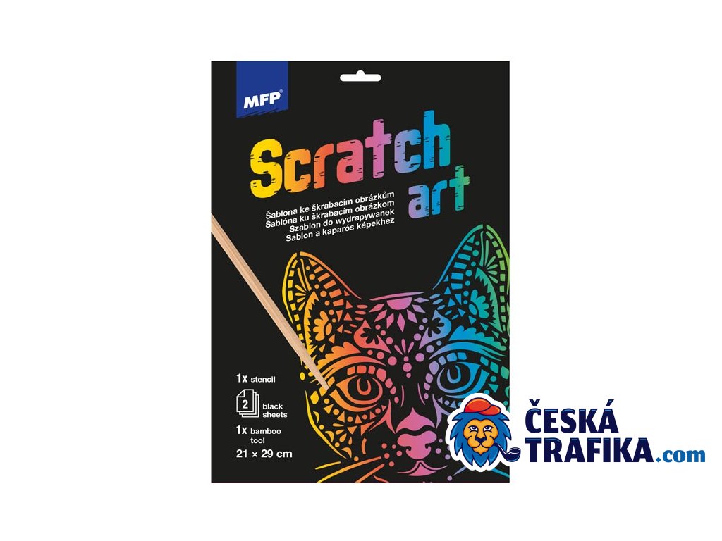🖌️ Škrabací obrázek - Šablona A4 Kočka 21x29 cm + 2 listy 🖌️