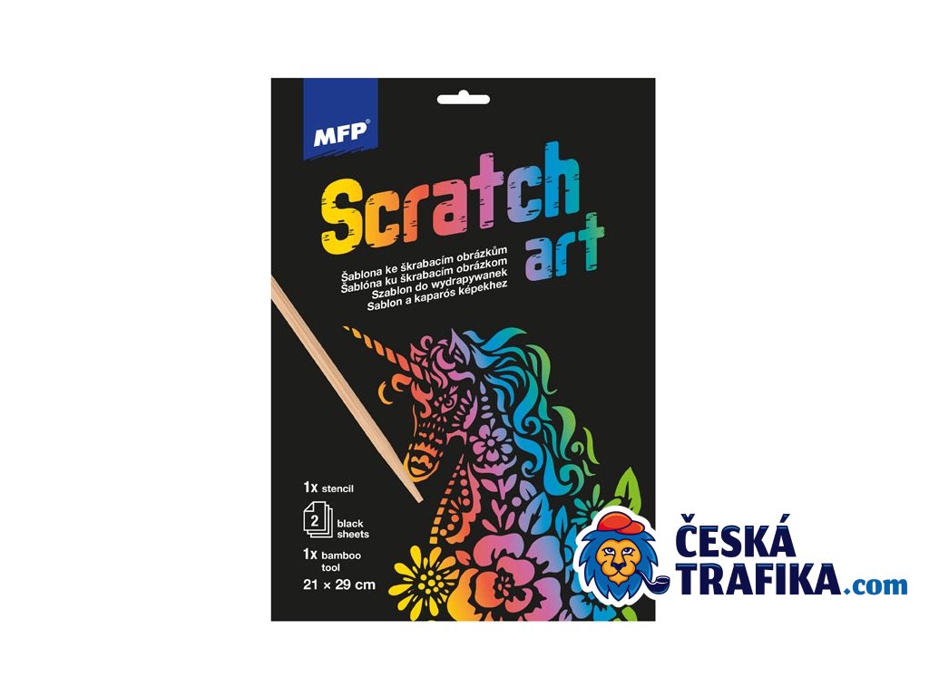 Škrabací obrázek šablona A4 Unicorn 21x29cm + 2 listy